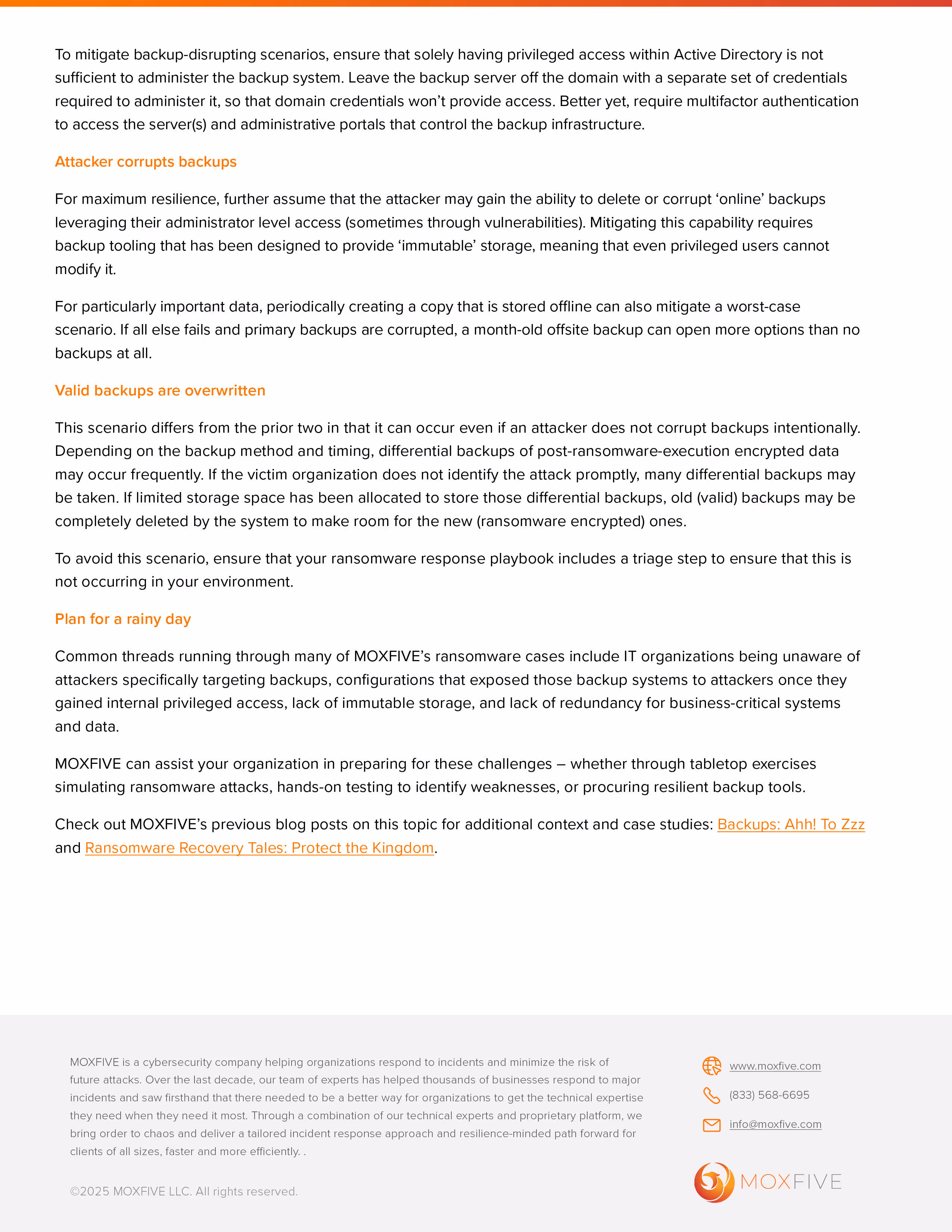 MOXFIVE Backups Data Sheet